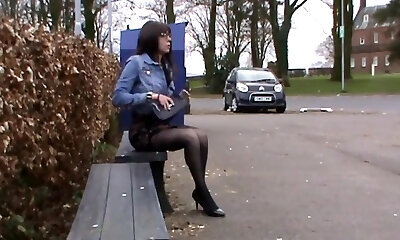 Mooie crossdresser heerlijke gerokte billen loopt buiten