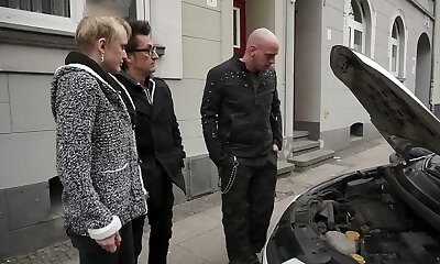 Titless worker Conny Dachs gets fucked by two lewd dudes