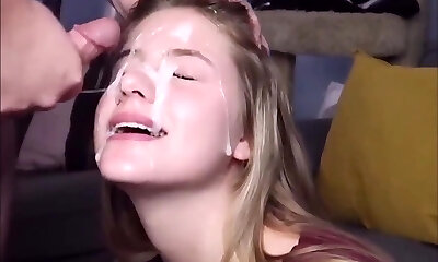 Cute teen get facial after blowjob and hard rear end pounding