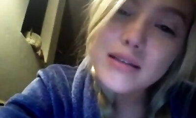 Blonde nubile toying her pussy with glass dildo on webcam