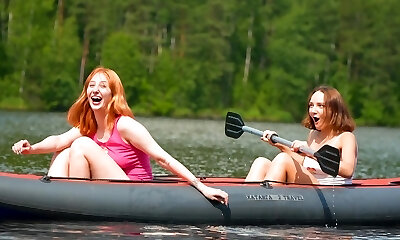 Sex-positive blond head teen enjoys doggy style hammering while camping