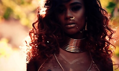 Wonderful ebony cowgirl with a pierced pussy enjoying a spicy bi-racial pound outdoors