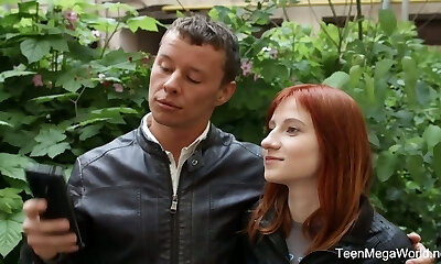 Chubby ginger-haired teenie gets it in the ass and on the face