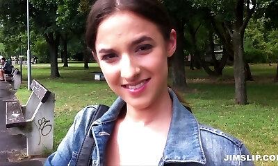 Caucasian teenie brunette has hooked up with a black guy just to feel his dick inwards her