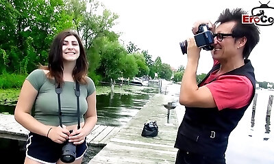 Real German girl next door couple try threesome FFM Casting