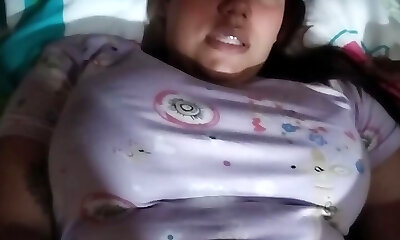 Mexican chubby girl licking her fun bags