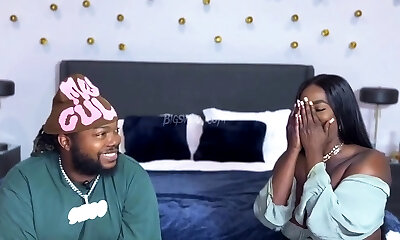 Superb ebony chick Britney pulls panties aside and takes a big white beef whistle down her throat