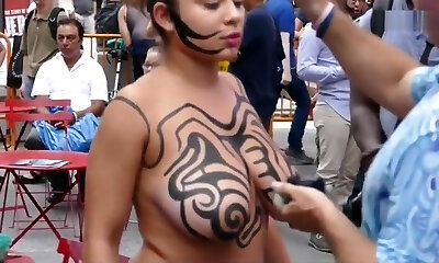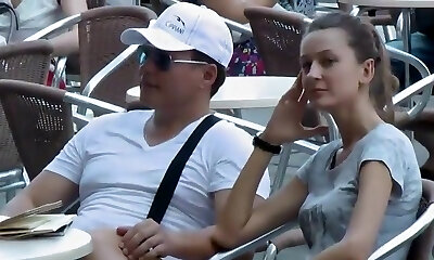 Sandy-haired authentic Russian lady pisses on the crowded street